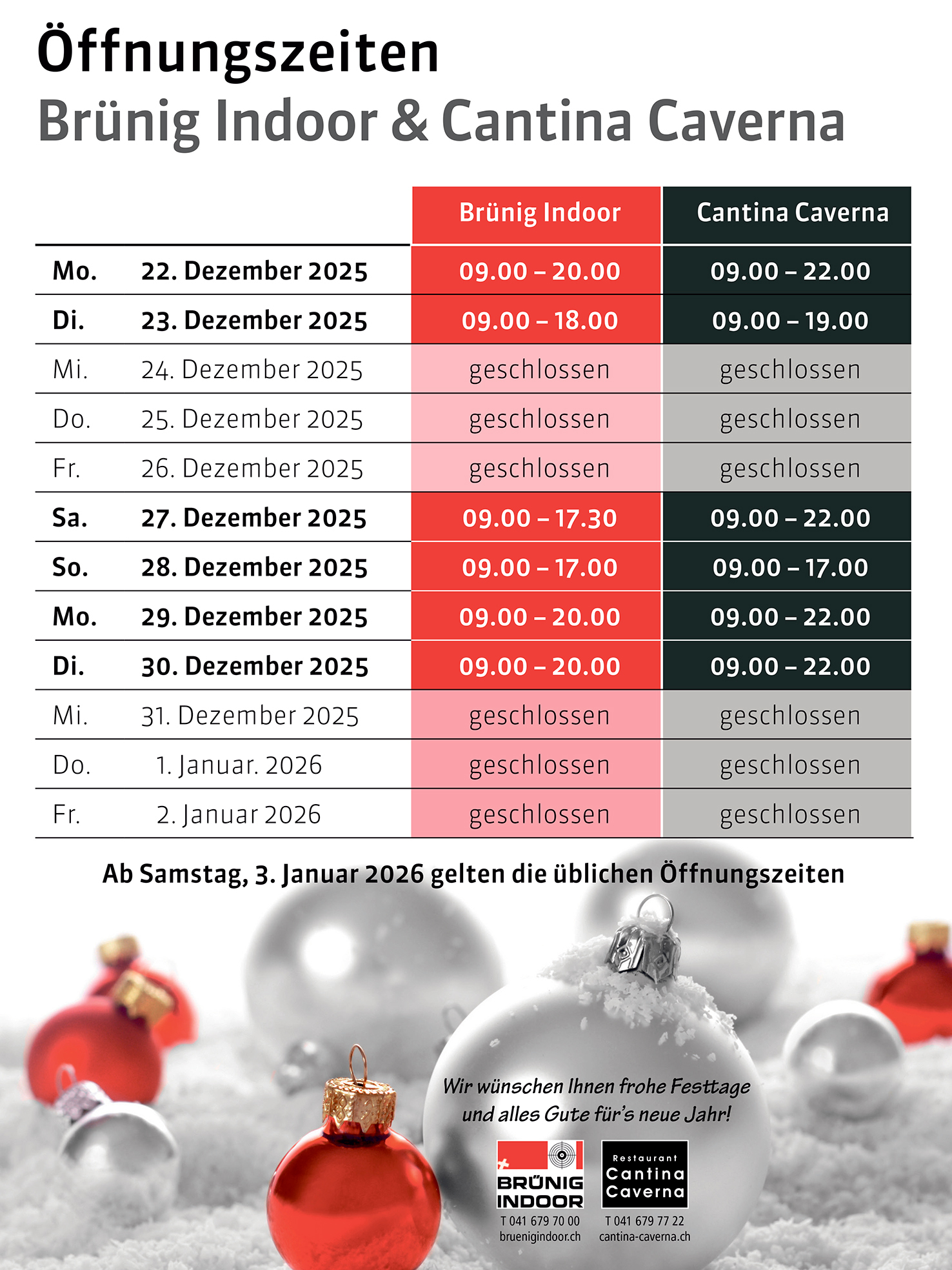 Mit Brünig Indoor und Cantina Caverna ins Schwarze treffen.